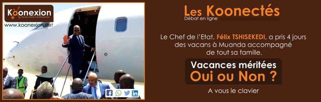 La première session du débat en ligne les Koonectés a porté sur « les vacances du Chef de l’État, Félix Tshisekedi, à Muanda accompagné de toute sa famille. Vacances méritées, OUI ou NON ? » Pendant presque 24 heures nos lecteurs ont tenté de répondre à cette question.
