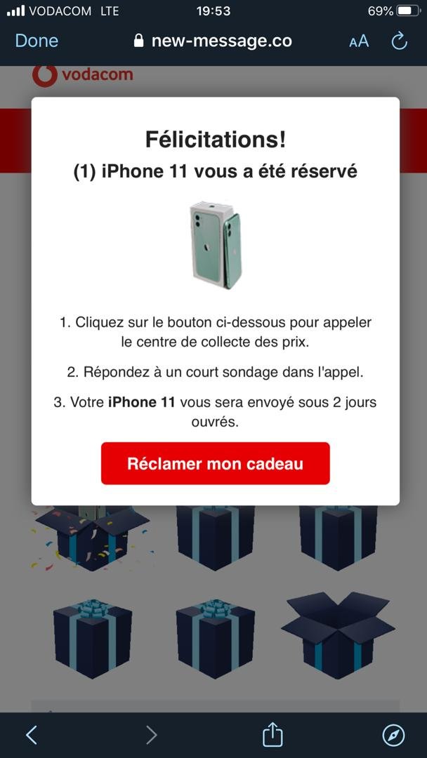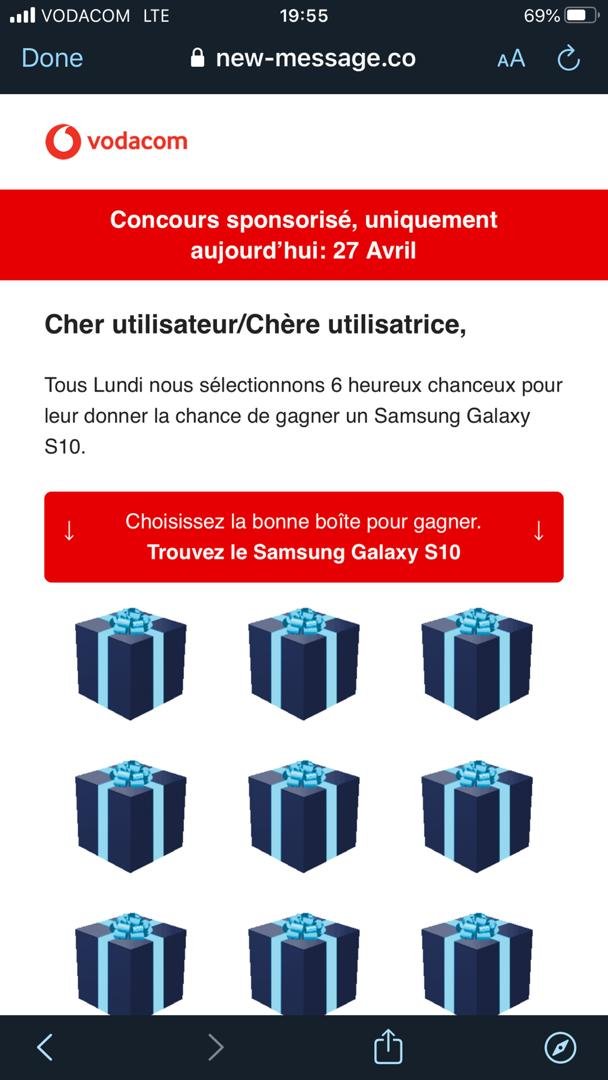 Vodacom Congo informe l’ensemble de ses abonnés qu’il n’organise aucun concours en ligne ayant pour prix à gagner les téléphones « Samsung Galaxy S10 et I-Phone ».