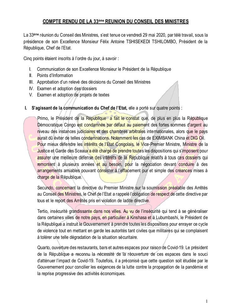Ci-dessous le compte-rendu du Conseil des ministres :