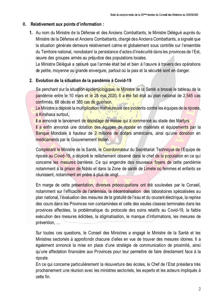 Il sied de signaler que la RDC se rapproche de 3000 cas déjà. 2966 cas positifs au Coronavirus ont été enregistrés le même jour.