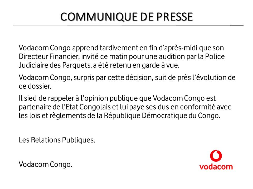 Ci-dessous le communiqué de Vodacom